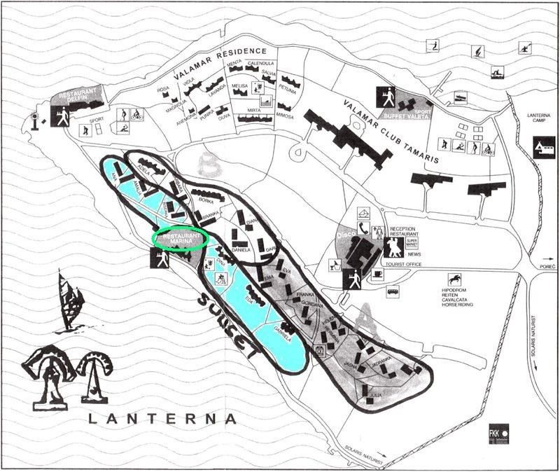 Poloostrov Lanterna, obrostlý hustou mediteránskou vegetací, není daleko od osad Tar a Vabriga. Pobyt v zelené oáze je šitý na míru celé rodině. O zábavu a aktivní odpočinek se zde stará personál Lanterny ať již různými animacemi, turistickými slavnostmi nebo karnevalem. Na západní straně poloostrova je kempink, apartmány a vily Lanterna, dále pak hotely Tamaris a Iris. Nudistický kempink a apartmány Solaris jsou na protějším břehu poloostrova Lanterna a celý turistický komplex doplňuje řada sportovních hřišť a restaurací.