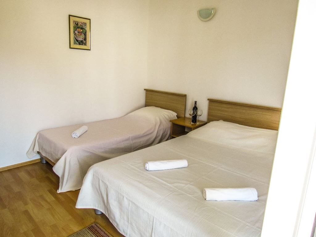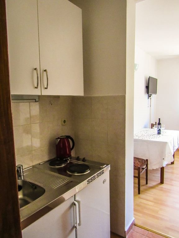Slavena vila: Vila Slavena se nachází 400 m od centra a 150 m od moře. Ve vile nabízíme kompletně vybavená studia pro 2-4 osoby, mají vybavený kuchyňský kout, sociální zařízení, balkon (kromě studia č. 3), SAT/TV, klimatizaci za poplatek, WIFI. Dále jeden kompletně vybavený apartmán až pro 10 osob typu 1/6+4. Parkování je možné u vily. Sportovní vyžití ve vzdálenosti 100 m, lékař včetně lékárny 300 m, pošta 400 m. Domácí zvíře je možné za poplatek.
