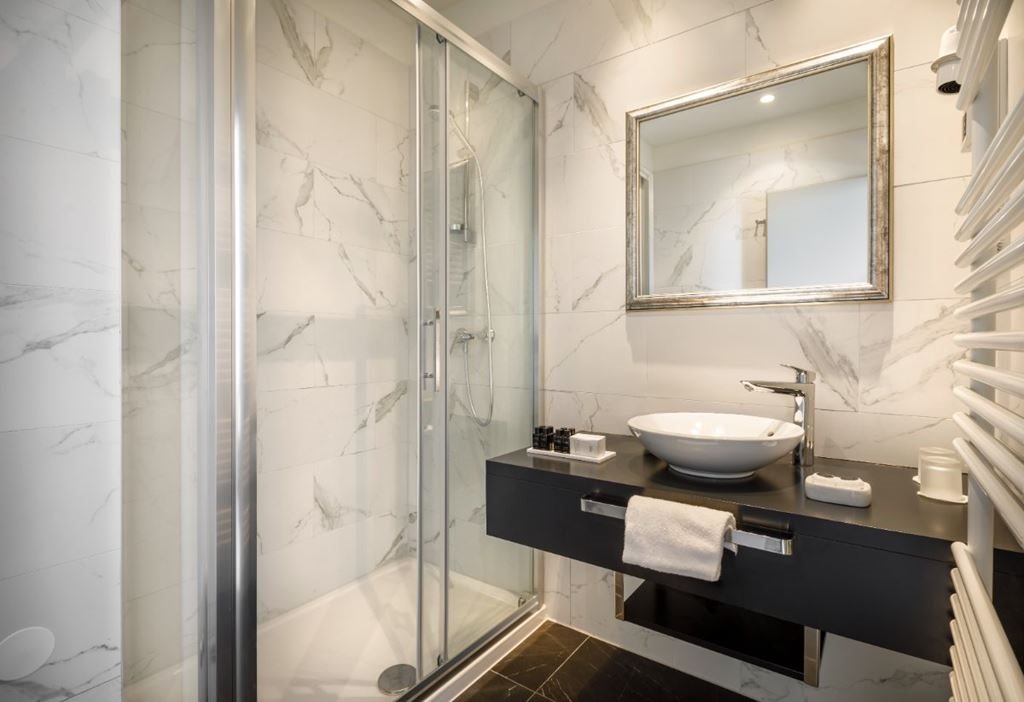 Dvoulůžkový pokoj typu Superior strana ulice (17-30 m2): s manželskou postelí nebo oddělenými postelemi. Koupelna je vybavena sprchovým koutem. Max. obsazenost 2 osoby.