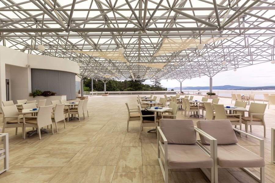 Pláž: oblázková pláž v blízkosti hotelu s možností pronájmu sportovních potřeb, slunečníků, lehátek. Venkovní bazén na terase otevřen od 15.5. do 15.9. (v závislosti na počasí)