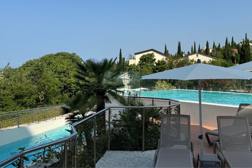 Superior pokoj: 1/2+1, velikost cca 22 m 2 , možnost až 2 přistýlek když se rozloží pohovka, balkon a pohled směrem na moře