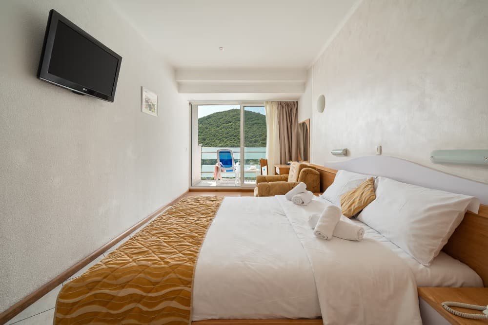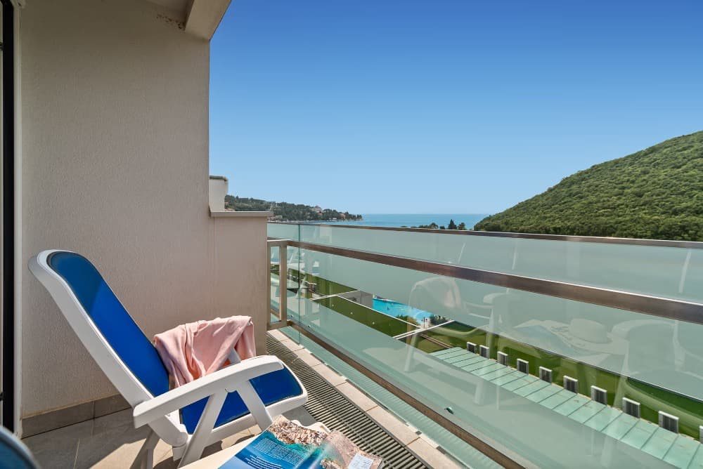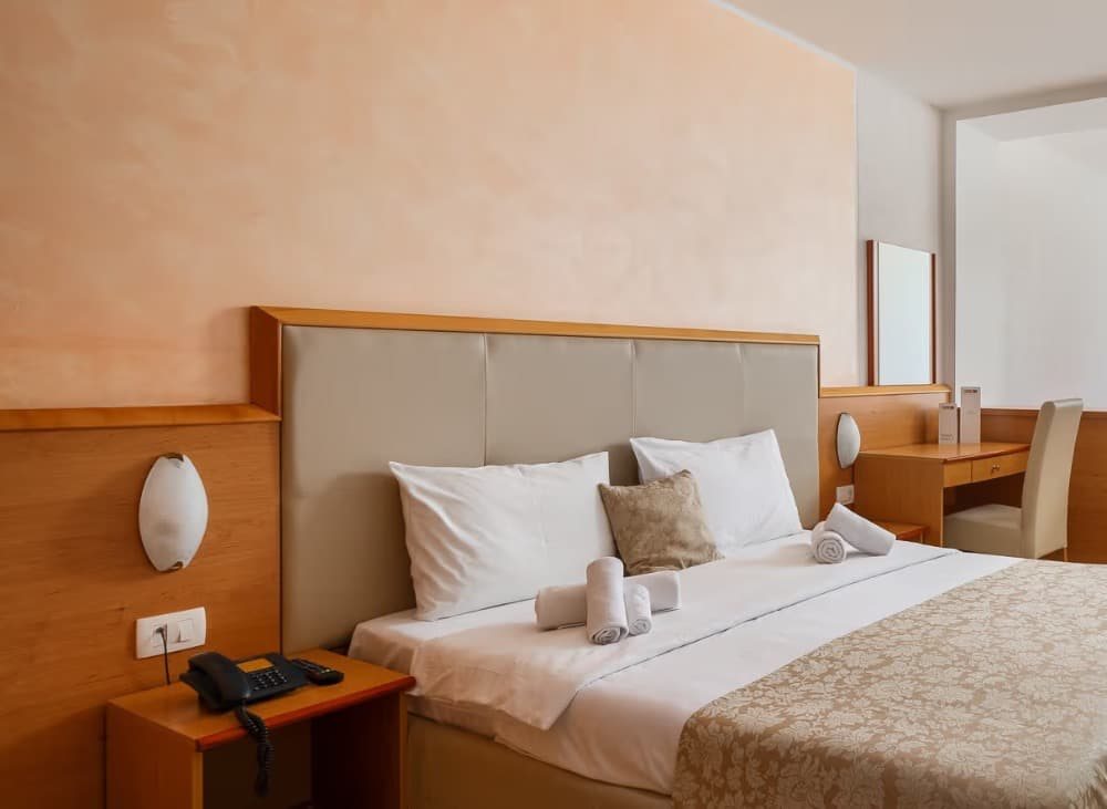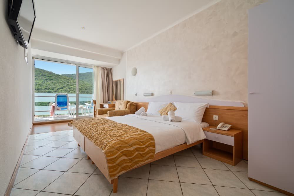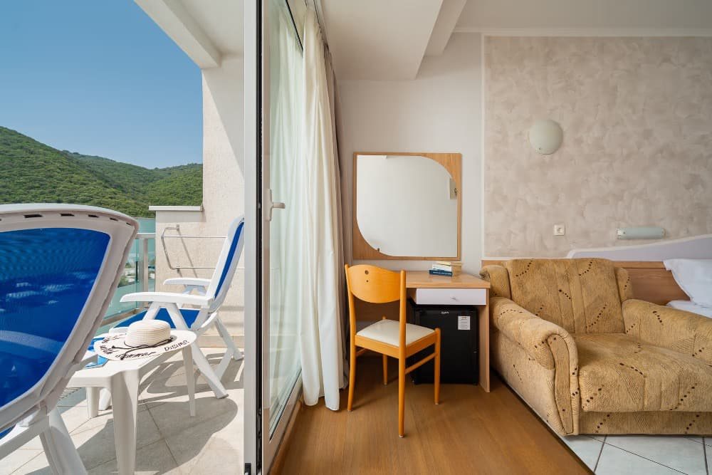 dvoulůžkové pokoje standard s balkonem na mořskou stranu ( 25 m 2 ), moderně zařízené prostorné dvoulůžkové pokoje s možností až dvou přistýlek jsou vybaveny sociálním zařízením (sprcha, toaleta, fén), telefonem, klimatizací, satelitní TV, trezorem, mimbarem a balkonem nebo terasou. Dětská postýlka je na vyžádání . Přistýlka je rozkládací gauč pro 1-2 osoby.