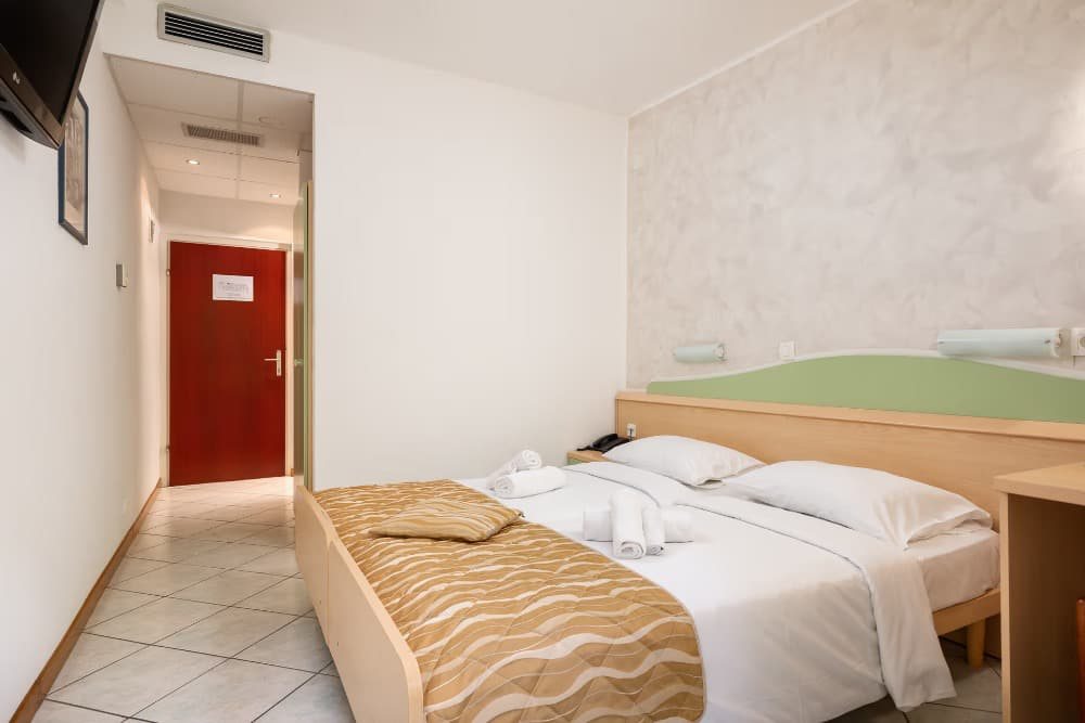 dvoulůžkové pokoje standard bez balkonu do ulice/parku ( 16 m 2 ), moderně zařízené prostorné dvoulůžkové pokoje bez možnosti přistýlky jsou vybaveny sociálním zařízením (sprcha, toaleta, fén), telefonem, klimatizací, satelitní TV, trezorem . Dětská postýlka je na vyžádání