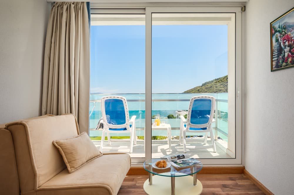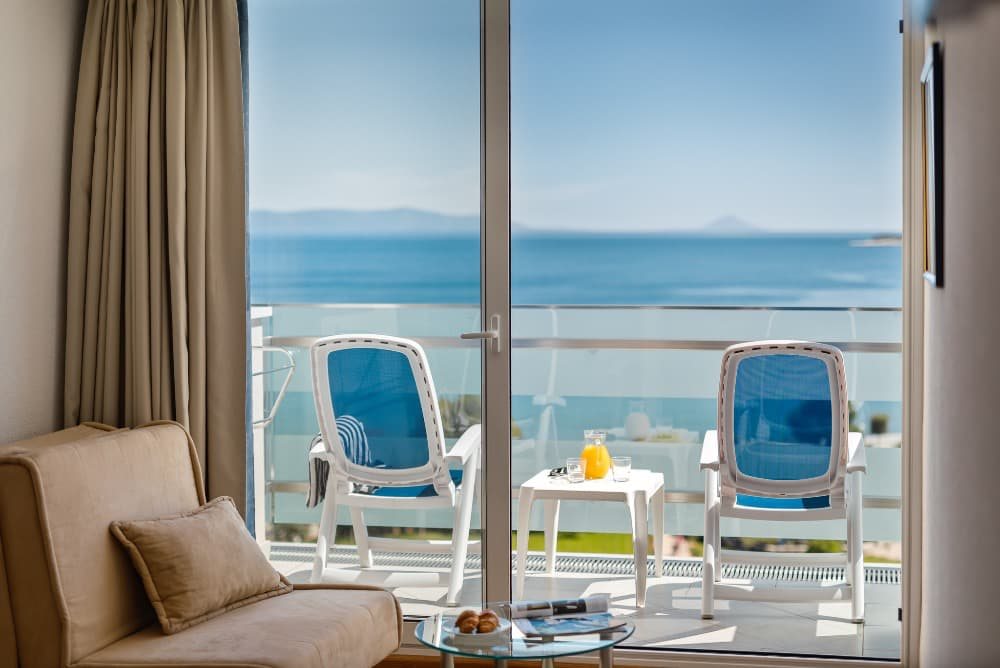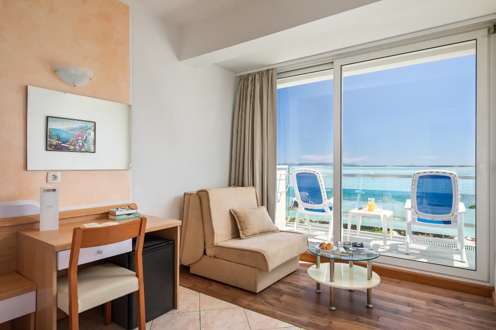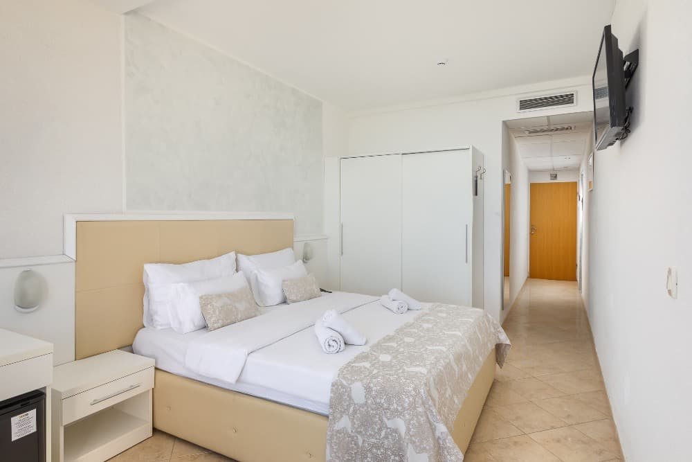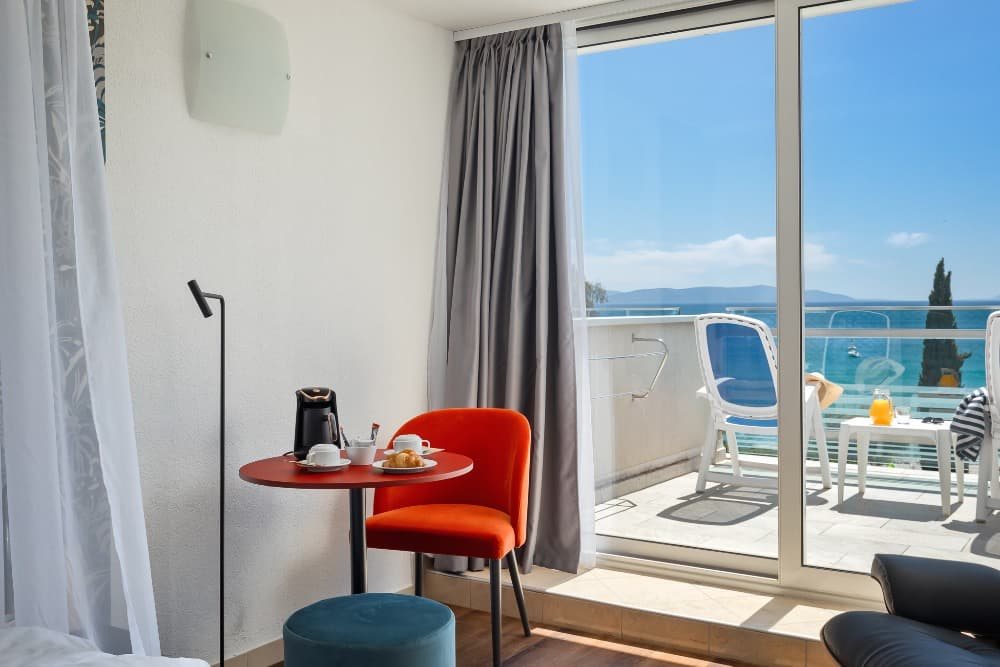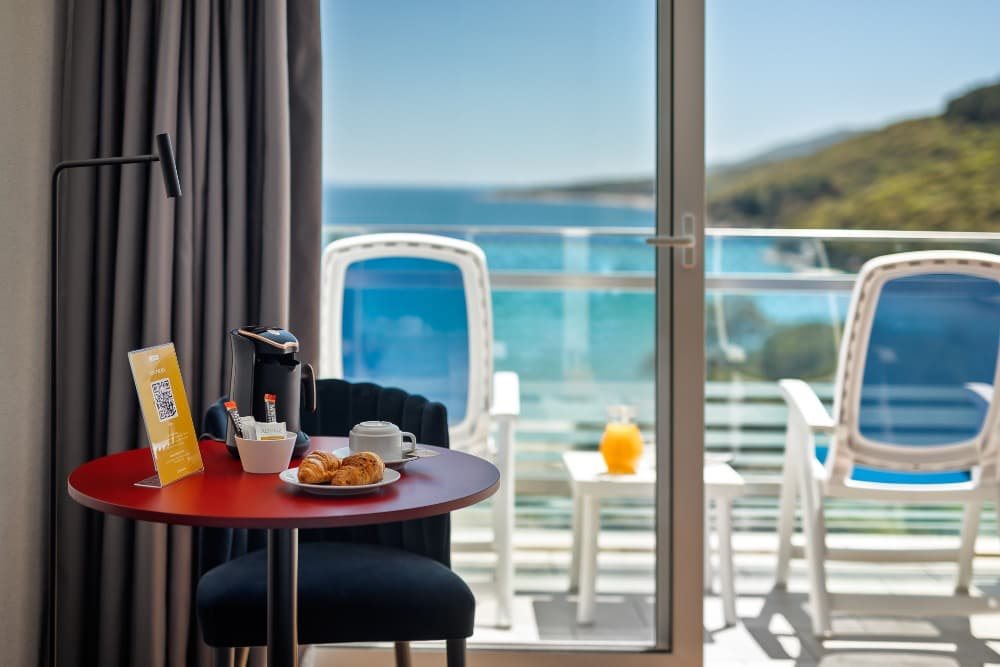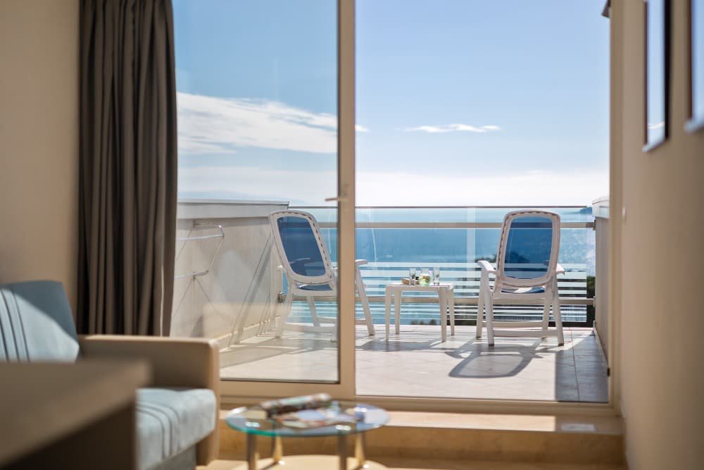 Dvoulůžkový pokoj standard s balkonem na mořskou stranu (S2MB) (25 m2) - moderně zařízený prostorný dvoulůžkový pokoj je vybaven sociálním zařízením (sprcha, toaleta, fén) telefonem, klimatizací, satelitní TV, trezorem, minibarem a balkonem nebo terasou. Dětská postýlka na vyžádání.
