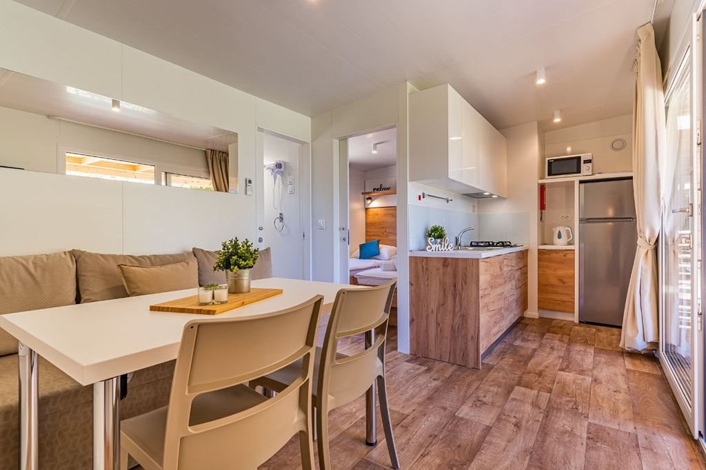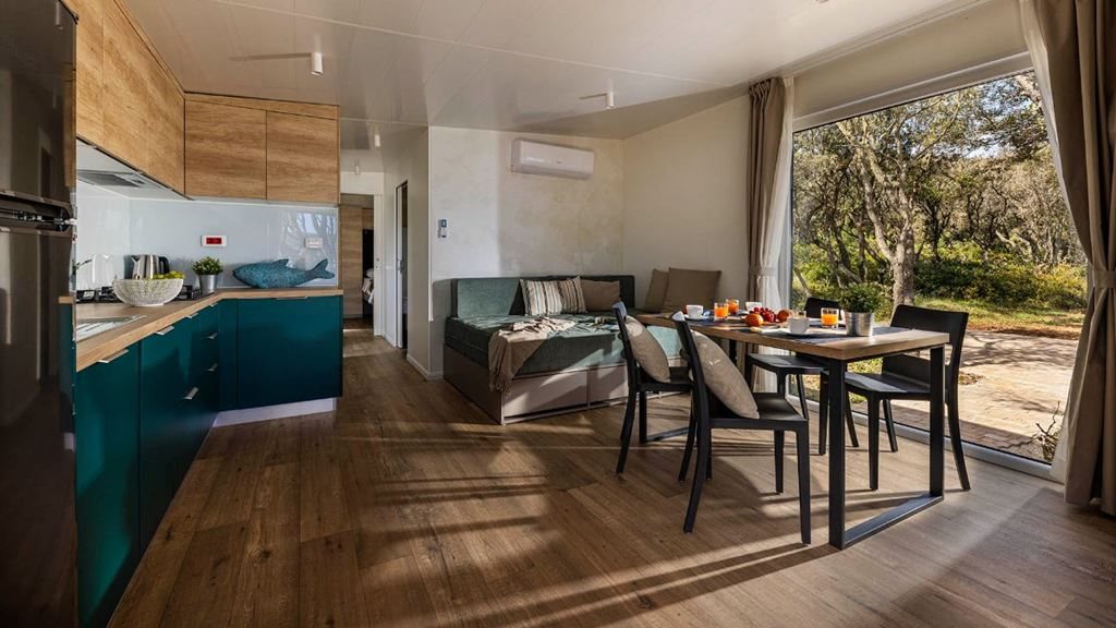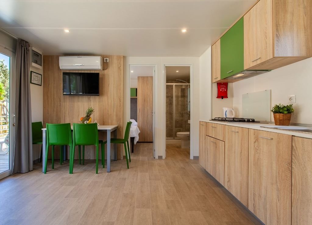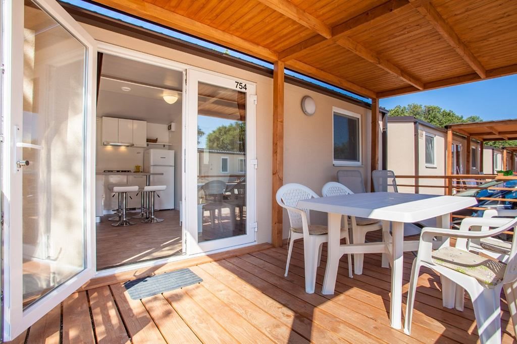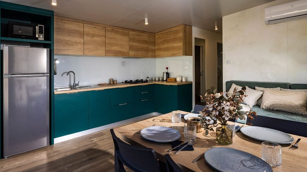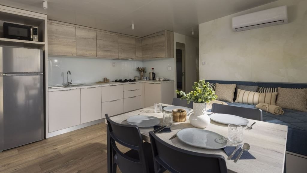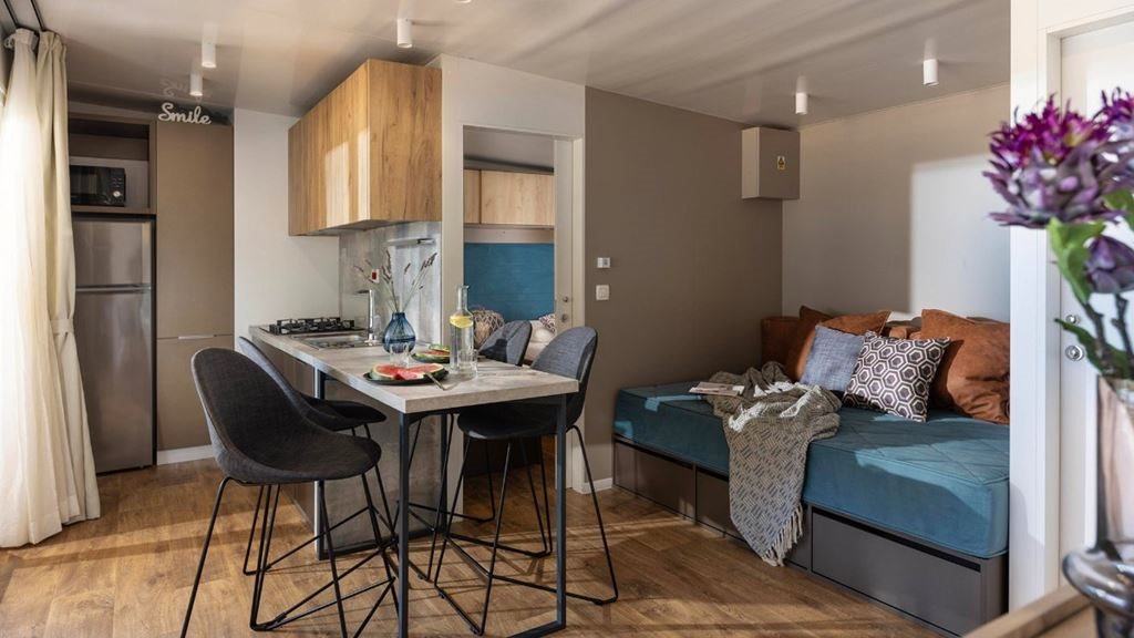 Každý mobilní dům má vlastní terasu s venkovním nábytkem, jsou plně zařízené a klimatizované a mají funkční kuchyň, bezplatné Wi-Fi a satelitní TV a mohou ubytovat až 6 osob.
