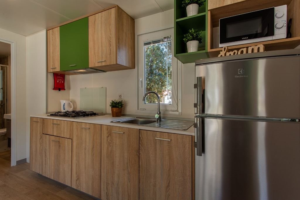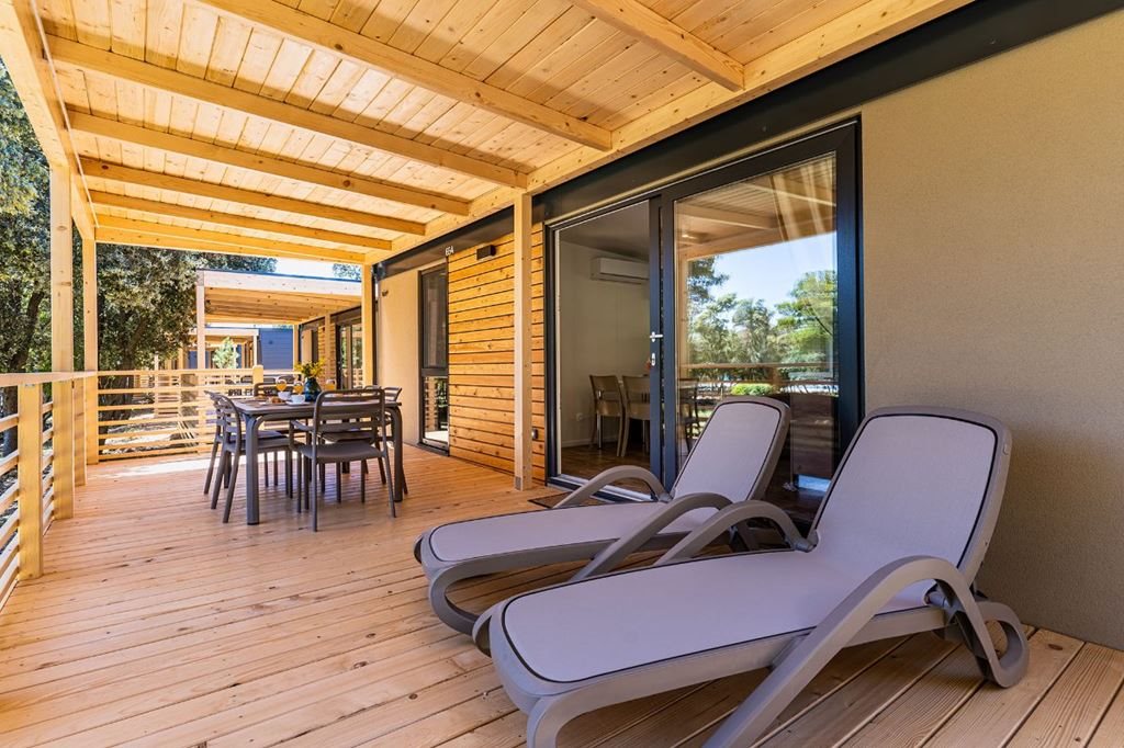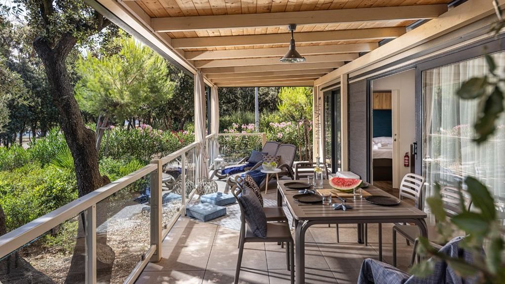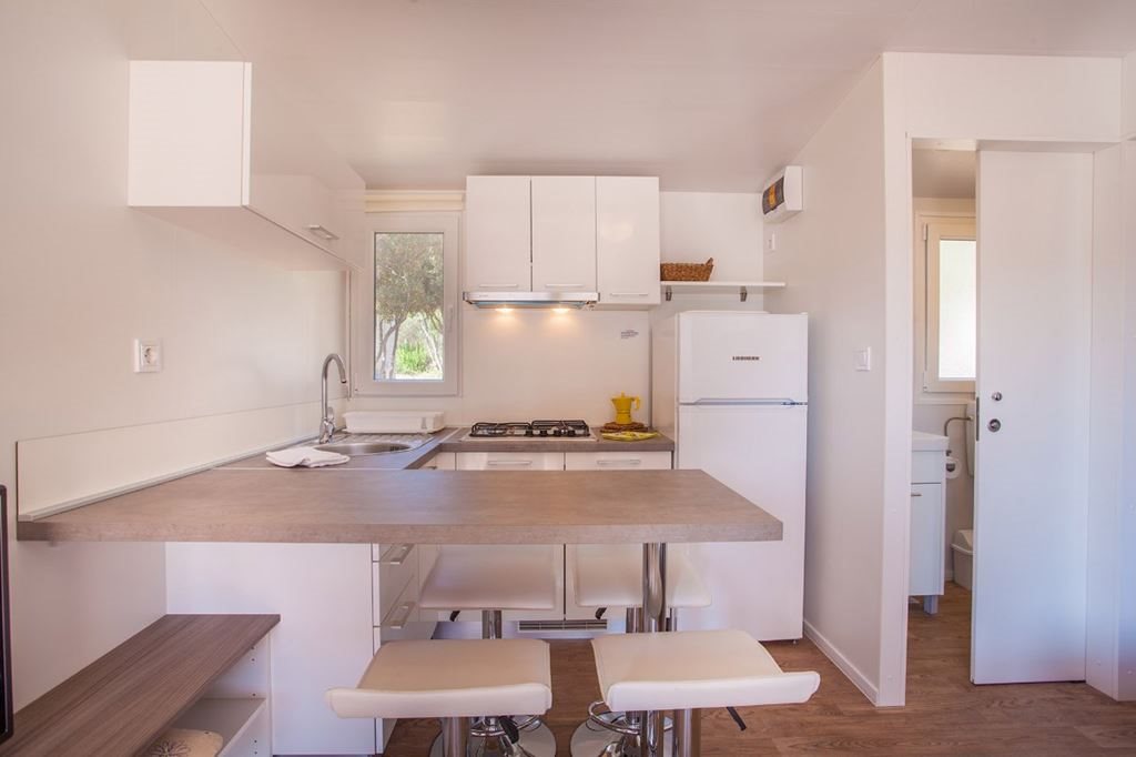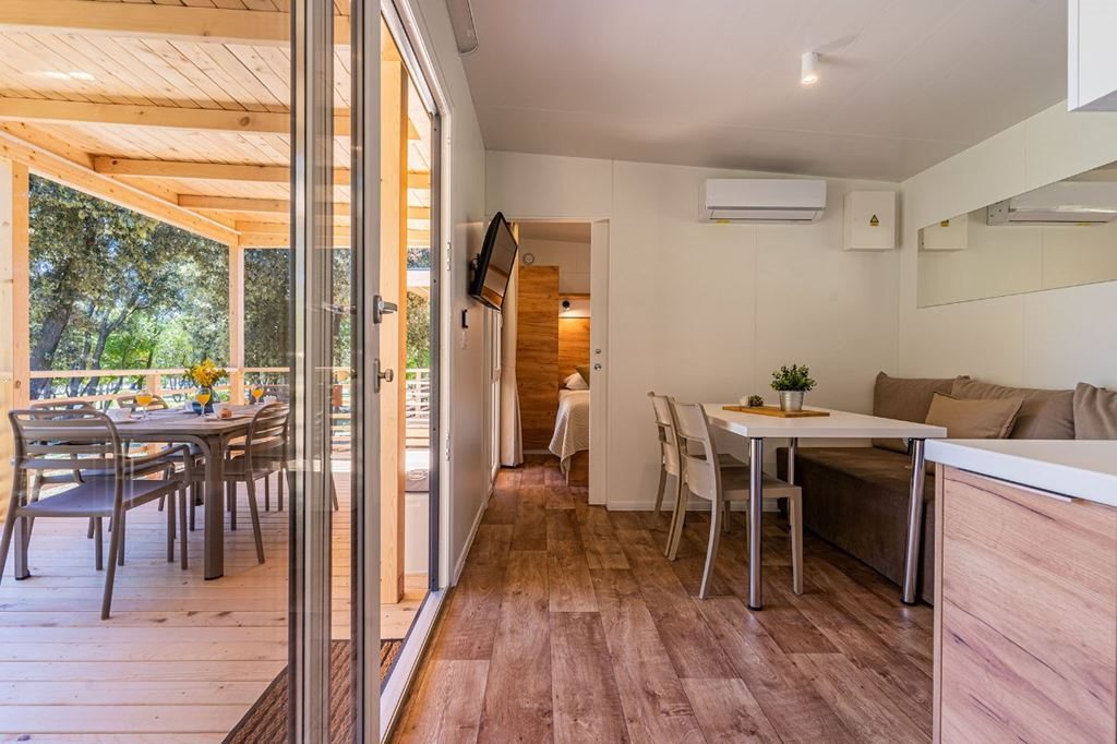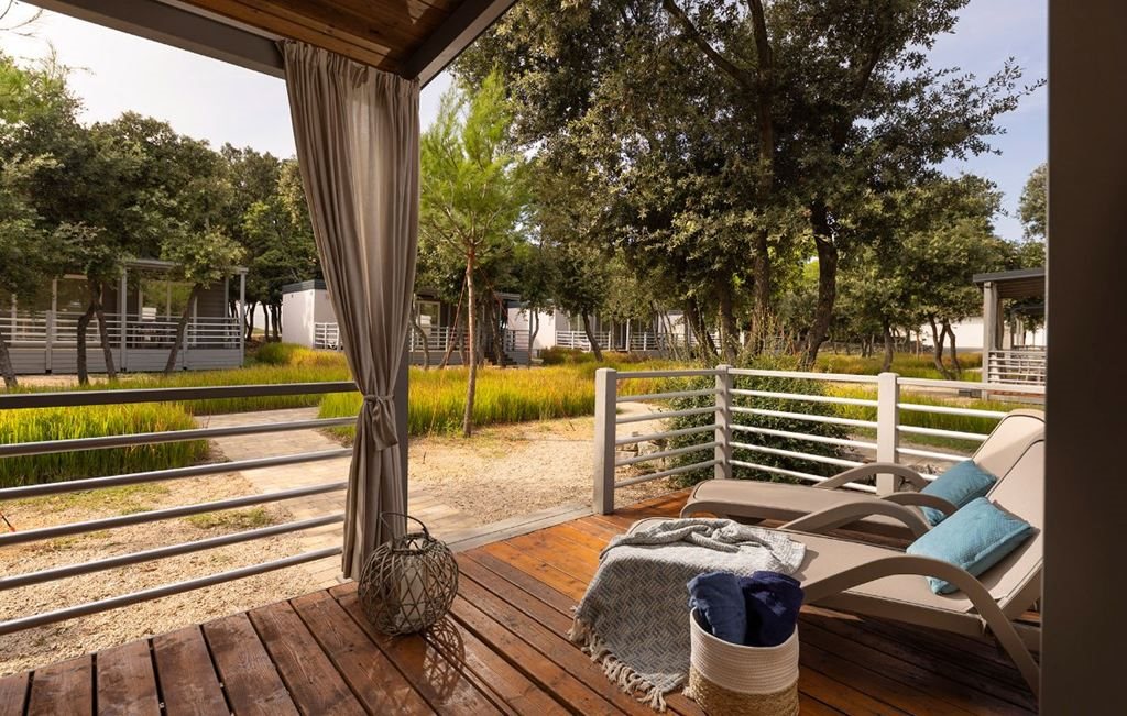 Každý mobilní dům má vlastní terasu s venkovním nábytkem, jsou plně zařízené a klimatizované a mají funkční kuchyň, bezplatné Wi-Fi a satelitní TV a mohou ubytovat až 6 osob.