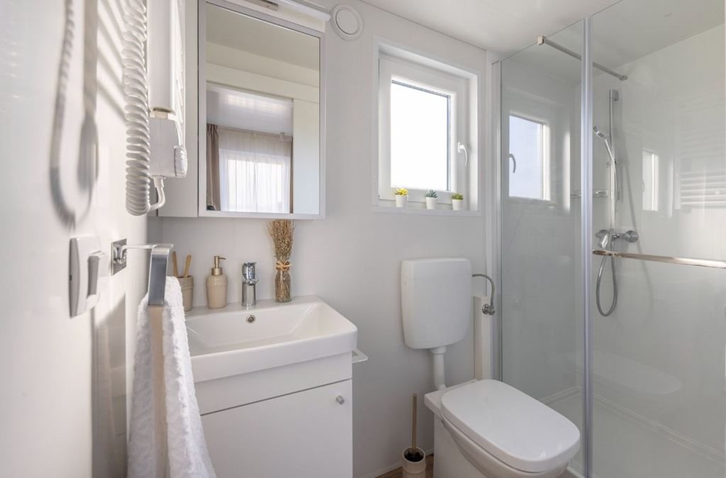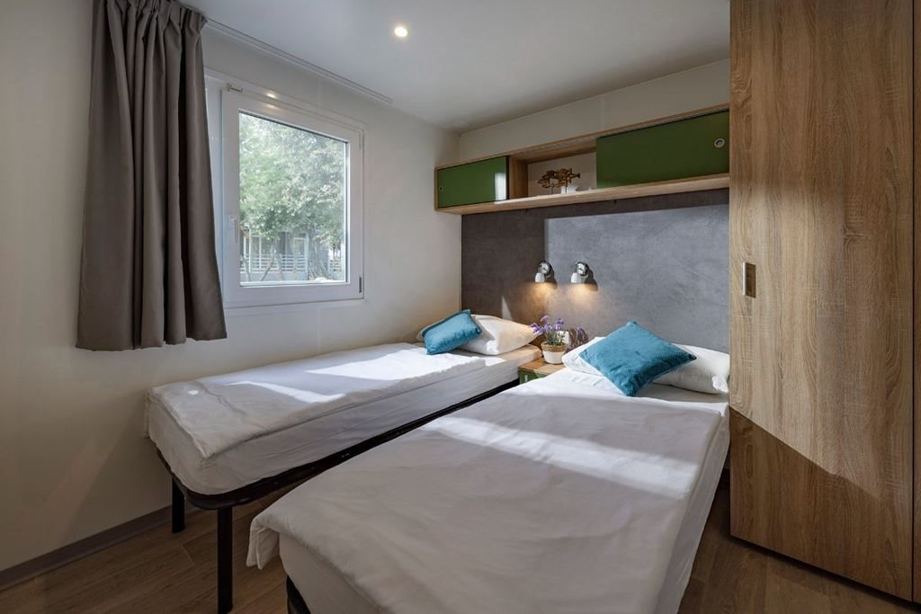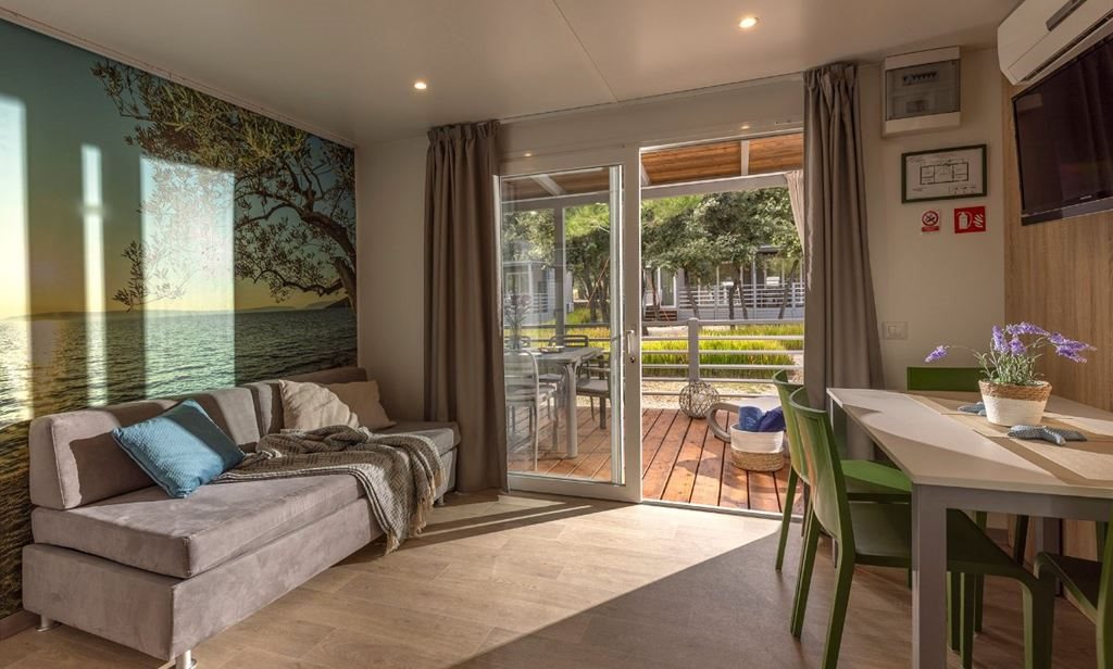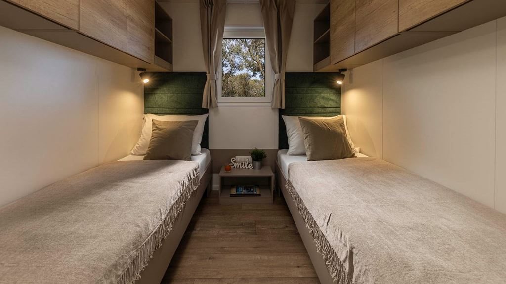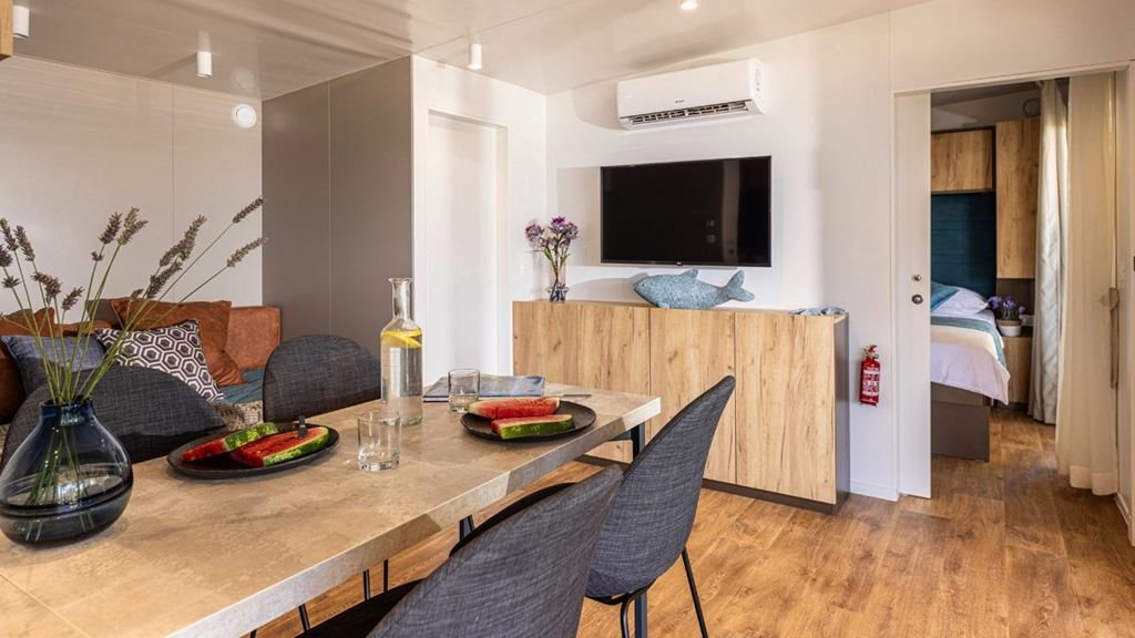 Sunny Village - 32 m2 + 13 m2 terasy, maximální obsazenost: 4 dospělí + 2 děti, ložnice s manželskou postelí, dětský pokoj s dvěma samostatnými lůžky, obývací pokoj s plně vybavenou kuchyní a rozkládací pohovkou pro dvě osoby, mikrovlnná trouba, klimatizace, dvě koupelny, bezplatné Wi-Fi, skupinové aktivity a cvičební programy, sportovní aktivity pro děti (od konce června do začátku září), zábavní programy (od konce června do začátku září), domácí mazlíčci povoleni za příplatek
