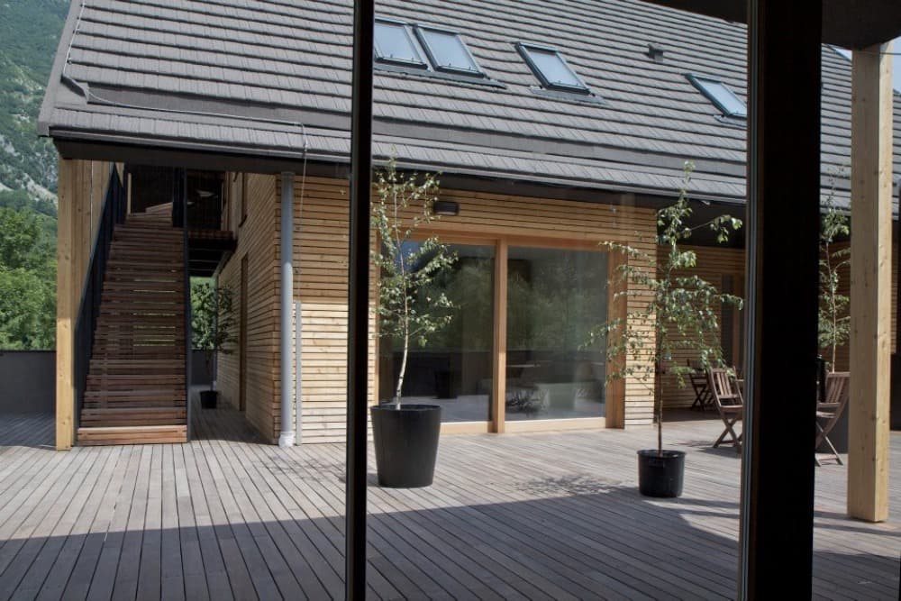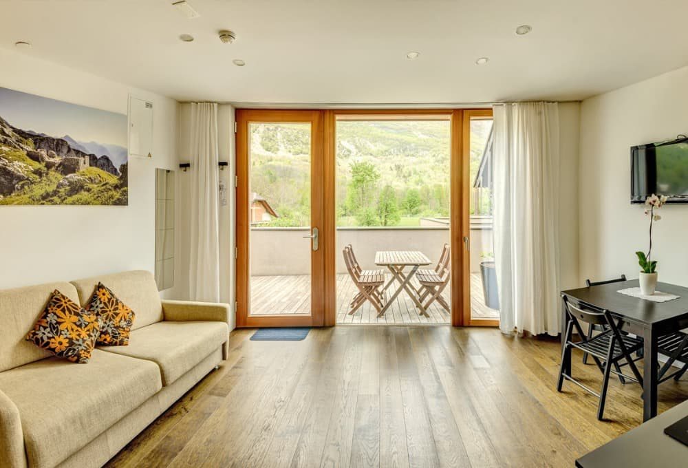 Ubytování Sanje ob Soči leží v klidné části Bovce (Mala vas 105a) a spojuje příjemnou atmosféru s praktickým zázemím pro výlety do údolí řeky Soči a do Triglavského národního parku. Vše je na dosah centra, ale se spoustou prostoru na klidný odpočinek na terase či ve světlých společných částech.