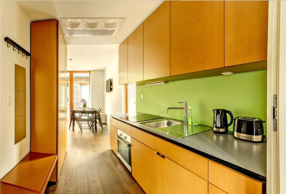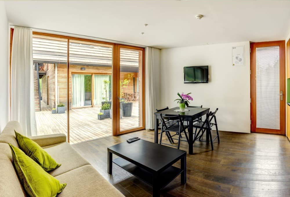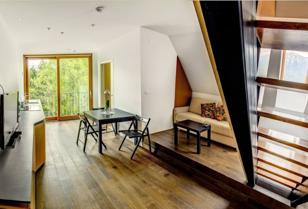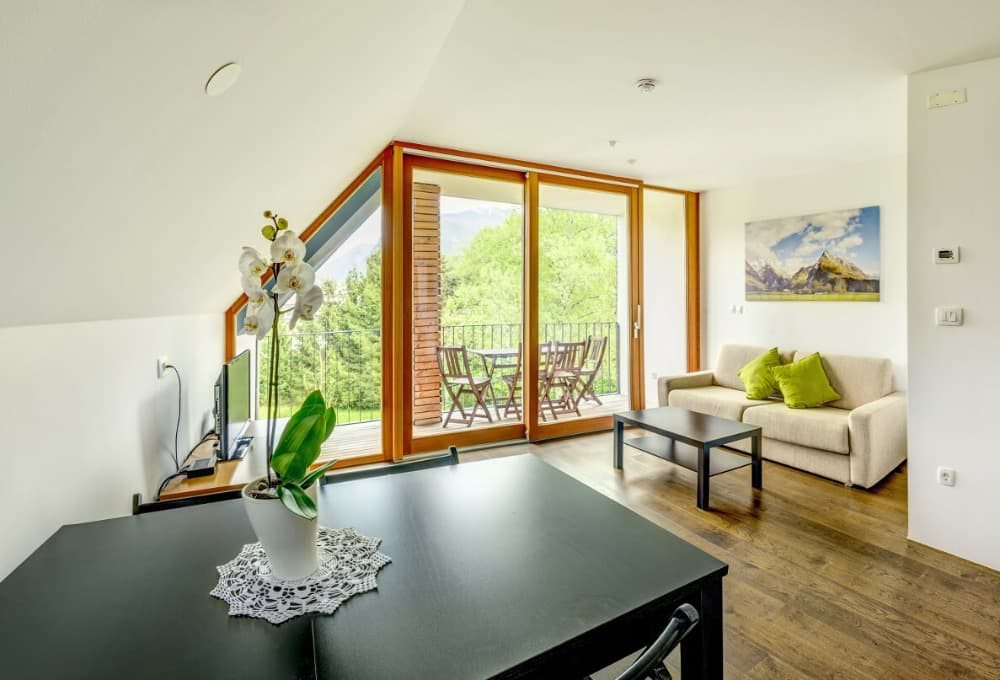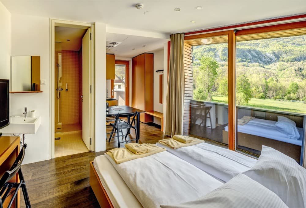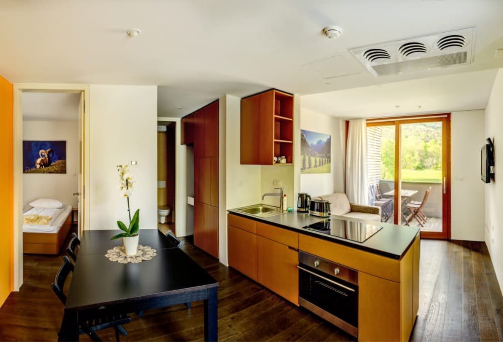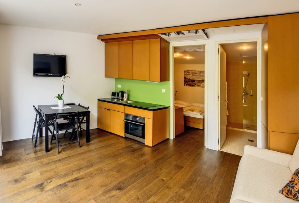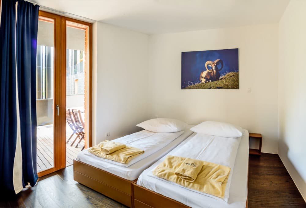 Vybrat si můžete z pohodlných jednolůžkových a dvoulůžkových pokojů, oblíbený je i dvoulůžkový pokoj s vířivkou pro soukromý relax. Pro delší pobyty a rodiny jsou k dispozici studia a apartmány různých velikostí (2+1, 2+2 a 3+2) s ložnicí/emi, koupelnou, vybavenou kuchyní a obývací částí (často s rozkládacím gaučem). Díky tomu snadno zkombinujete výlety s domácím komfortem.